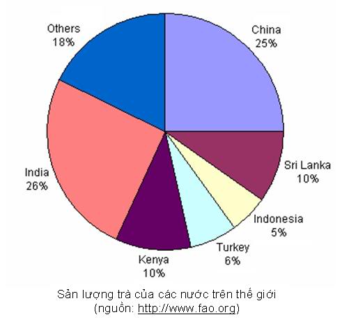 – Thứ nhất: Toàn thế giới có đến 40 nước trồng trà hằng năm sản xuất ra khoảng 3 triệu tấn trà, tập trung nhiều ở các nước Châu Á như Trung Quốc, Ấn Độ, Srilanka, Bangladesh, Pakistan, Iran, Việt Nam, Korea, Nhật Bản, Đài Loan, Indonesia, Nepal, Thái Lan… Ngoài Châu Á ra thì Kenya ở châu Phi, Argentia ở châu Mỹ và Úc cũng là những nước sản xuất nhiều trà. Riêng Trung Quốc đã có trên 200 loại trà.